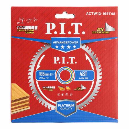 Диск пильный по дереву ADVANCE 165х20х1.4мм 48T Carbide зуб TCG 15град. P.I.T. ACTW12-165T48