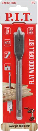 Сверло по дереву перовое 16х152мм хвостовик HEX 1/4дюйм (6.35мм) P.I.T. AWOD04-0016