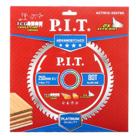 Диск пильный по дереву ADVANCE 250х30х2.4мм 80T Carbide зуб TCG 15град. P.I.T. ACTW12-250T80