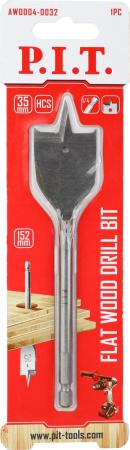 Сверло по дереву перовое 35х152мм хвостовик HEX 1/4дюйм (6.35мм) P.I.T. AWOD04-0035