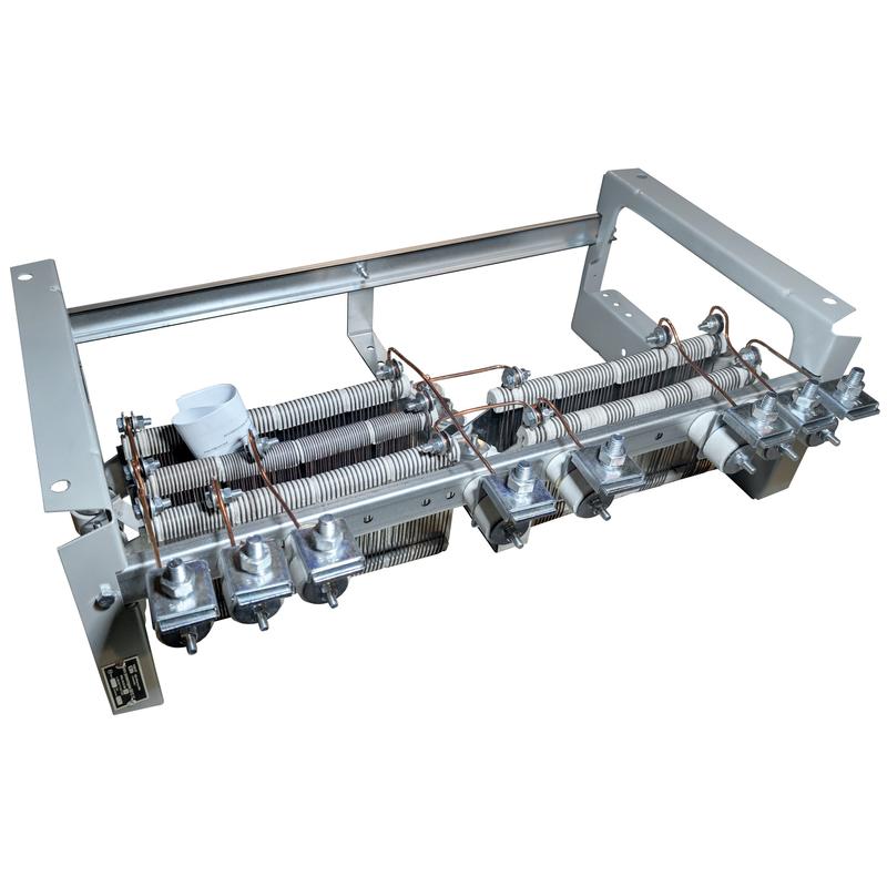 Блоки резисторов крановые типа БК12М ИРАК 434.331.003-10 используются для запуска и регулировки скорости оборотов крановых электрических двигателей постоянного и переменного тока. Блок резисторов БК12М ИРАК 434.331.003-10 представляет собой конструкцию открытого исполнения, состоящую из двух стальных пластин-боковин, соединенных двумя планками с поперечной стяжкой. На боковинах и поперечной стяжке на трубчатых фарфоровых изоляторах устанавливаются резисторы. Серия: БК12М