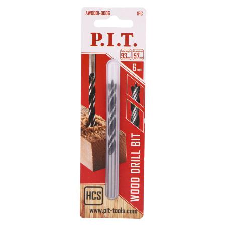 Сверло по дереву спиральное 6х93мм круглый хвостовик центр. шип P.I.T. AWOD01-0006