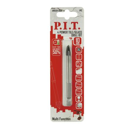 Сверло по стеклу керамике 10х90мм 4 режущие кромки хвостовик HEX 1/4дюйм (6.35мм) P.I.T. AMAS11-010P