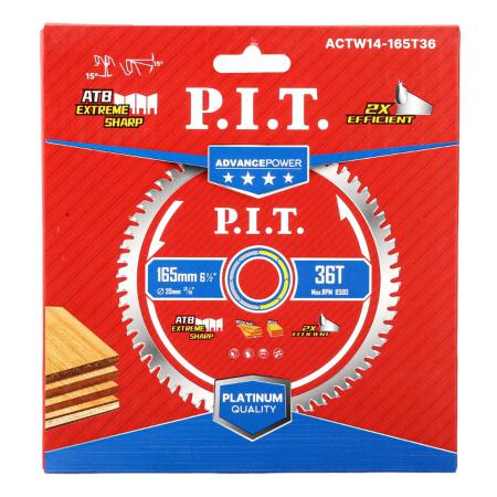 Диск пильный по дереву ADVANCE 165х20х1.4мм 36T Carbide зуб ATB 15град. P.I.T. ACTW14-165T36