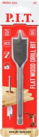 Сверло по дереву перовое 24х152мм хвостовик HEX 1/4дюйм (6.35мм) P.I.T. AWOD04-0024