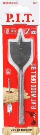 Сверло по дереву перовое 36х152мм хвостовик HEX 1/4дюйм (6.35мм) P.I.T. AWOD04-0036
