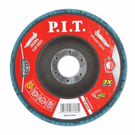Круг лепестковый шлифовальный DRUA 125х22.2мм ZA120 циркониевый корунд P.I.T. APLS26-12512