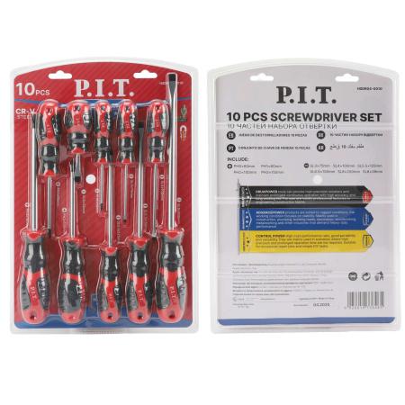Набор отверток с магнитным наконечником ADVANCE Cr-V PH0-PH3; SL3-SL8 (10 предметов) P.I.T. HSDR04-0010
