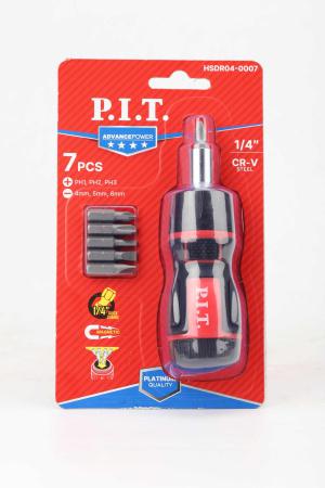 Набор бит с рукояткой ADVANCE рукоятка с трещоткой; биты 6шт (блист.) (7 предметов) P.I.T. HSDR04-0007