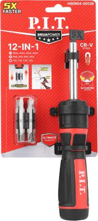 Набор бит с рукояткой ADVANCE рукоятка с трещоткой; биты 12шт; держатель P.I.T. HSDR04-0012B