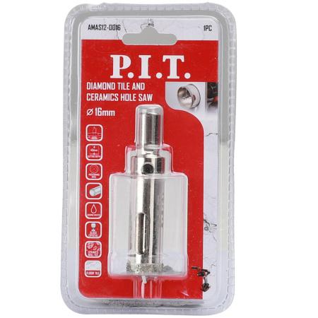 Коронка алмазная по стеклу и керамике 16х40мм хвостовик HEX направляющее сверло сухое/мокрое P.I.T. AMAS12-0016