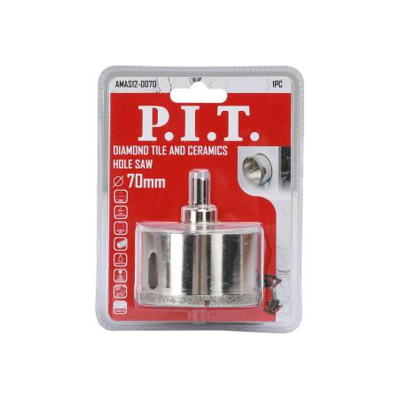 Коронка алмазная по стеклу и керамике 70х40мм хвостовик HEX направляющее сверло сухое/мокрое P.I.T. AMAS12-0070