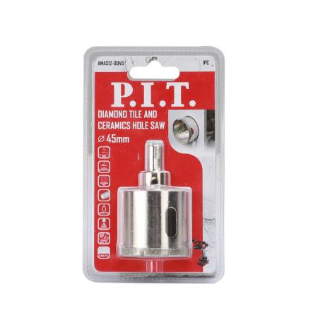 Коронка алмазная по стеклу и керамике 45х40мм хвостовик HEX направляющее сверло сухое/мокрое P.I.T. AMAS12-0045