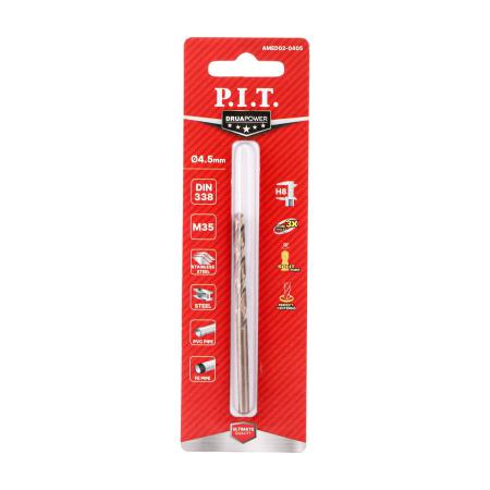 Сверло по металлу 4.5х80мм М35 135град. покрытие титан.; кобальт. Со5% P.I.T. AMED02-0405