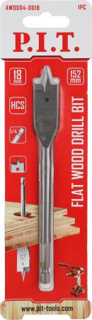 Сверло по дереву перовое 18х152мм хвостовик HEX 1/4дюйм (6.35мм) P.I.T. AWOD04-0018