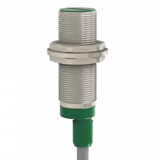 Индуктивный датчик ВБИ-М18-46В-1113-С в цилиндрическом корпусе из никелированной латуни D=18 мм, в общепромышленном исполнении.
