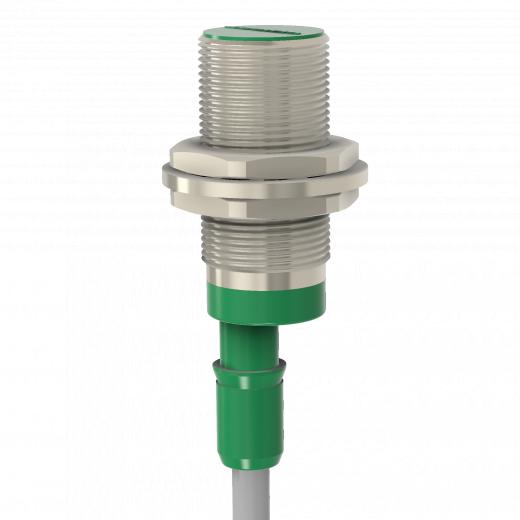 Индуктивный датчик ВБИ-М18-34С-1111-С в цилиндрическом корпусе из никелированной латуни D=18 мм, в общепромышленном исполнении.