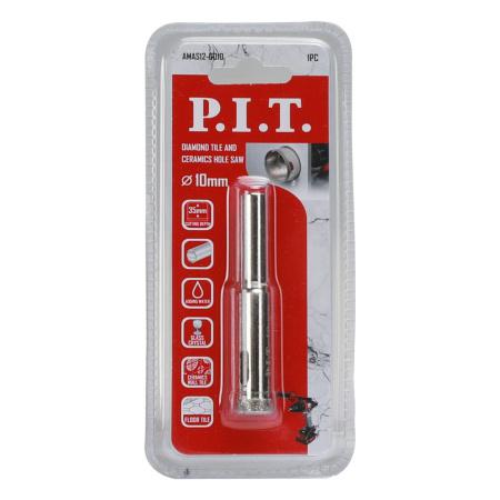 Коронка алмазная по стеклу и керамике 10х35мм круглый хвостовик сухое/мокрое P.I.T. AMAS12-0010