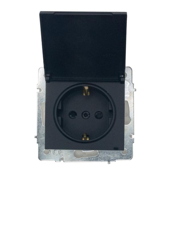 Розетка 1-м СП VESNA 16А IP44 с заземл. с крышкой ПБТ механизм черн. LEZARD 742-4288-123BIPCH