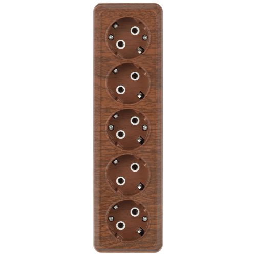 Розетка 5-м ОП Quadro 2-210-10 16А IP20 5х2P+E 250В с заземл. венге Intro Б0053860