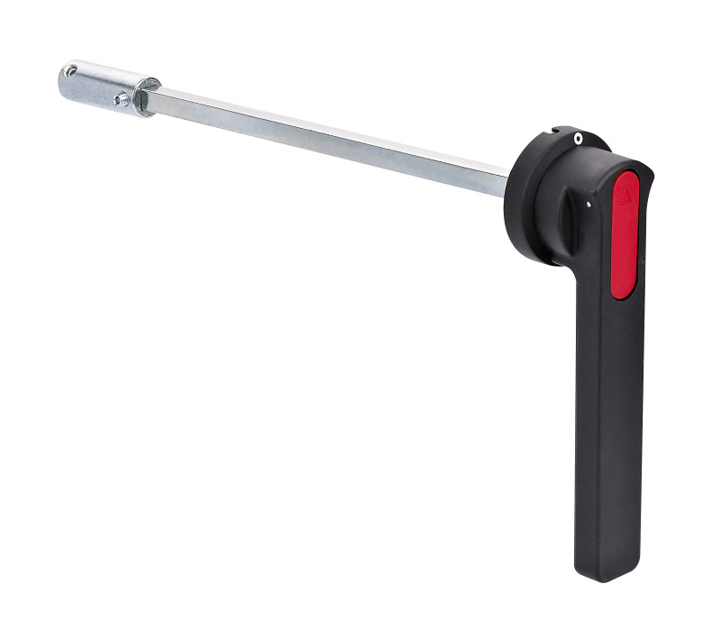 Рукоятка выносная Dekraft серии ВР-100С, типа РП-108С; для выключателей-разъединителей серии ВР-100С типов ВР-108С на номинальный ток 1000-1500А; длина штока рукоятки - 350мм; монтаж - на дверь шкафа. Рукоятка обеспечивает невозможность открывания двери шкафа при включенном выключателе.