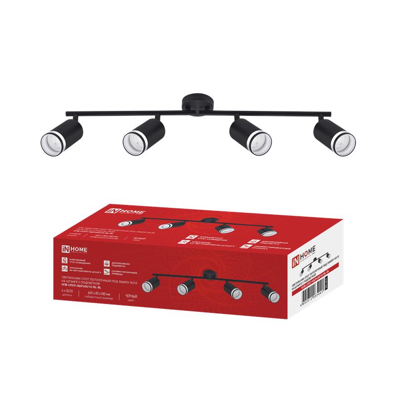 Светильник НПБ СПОТ-4ШРxGU10-NL-BL GU10 IP20 потолочн. на штанге с подсветкой черн. IN HOME 4690612065441