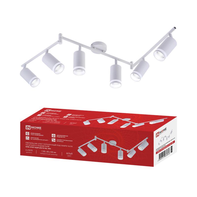 Светильник НПБ СПОТ-6ШРxGU10-NL-WH GU10 IP20 потолочн. на штанге с подсветкой бел. IN HOME 4690612065656