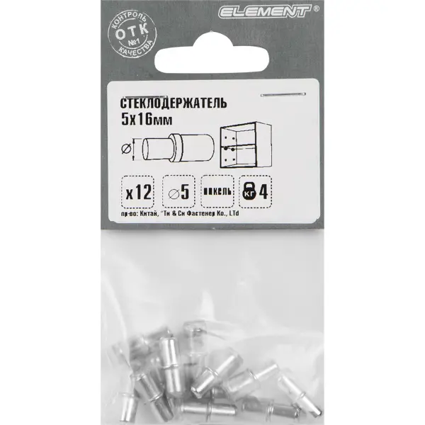 Стеклодержатель мебельный 5x16 мм, металл, цвет хром, 12 шт.