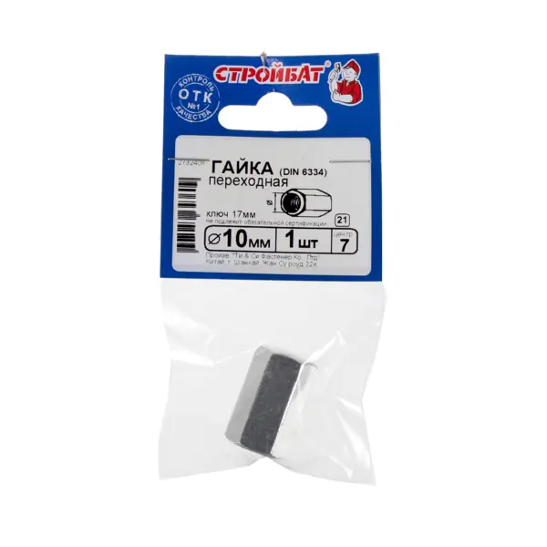 Переходная гайка М10, которую мы предлагаем купить, используется для соединения и удлинения резьбового крепежа вроде шпилек и болтов. Отличительной особенностью подобных изделий является большая высота корпуса, превосходящая ширину почти вдвое. Изготовлена гайка из высокопрочной оцинкованной стали. Мизерная цена несопоставима с незаменимостью этого элемента во многих ситуациях. Преимущества: - Высокая надежность переходных соединений. - Отсутствие альтернативы при скреплении крупногабаритных деталей. - Надежная антикоррозионная защита.
