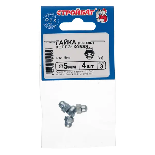 Колпачковые гайки широко применяются при сборке всевозможных конструкций, от складских и производственных, до мебельных и бытовых. Колпачковая гайка защищает от травм и придает изделию аккуратный и законченный внешний вид. Оцинкованные колпачковые гайки можно использовать как в закрытых помещениях, так и на открытых площадках. Диаметр резьбы - М5. Шаг резьбы - 0,8. Размер под ключ - 8 мм. Преимущества: - придает аккуратный внешний вид; - широкая сфера применения; - антикоррозионное оцинкованное покрытие; - диаметр резьбы 5 мм.