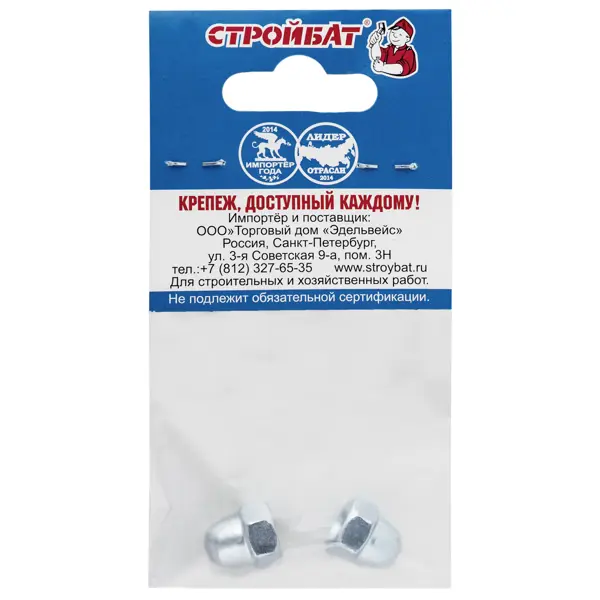 Колпачковая гайка М8 представляет собой небольшой шестигранник с внутренней резьбой и прессованным металлическим колпачком сверху. Данный вид крепежа является вспомогательным и используется там, где нужно придать соединению более эстетичный вид или защитить основной крепёж от коррозии. Монтаж занимает минимум времени, и производится с помощью обычного гаечного ключа или гайковёрта. Преимущества: - отвечает требования международного стандарта DIN 1587; - небольшой полукруглый колпачок полностью скрывает неприглядные части крепежа; - покрытие слоем цинка обеспечивает дополнительную защиту от коррозии и влаги; - 2 шт. в упаковке.