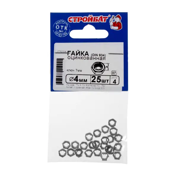 Оцинкованная гайка DIN 934 М4широко используется в строительстве и промышленности. Она имеет такое строение, которое позволяет монтировать ее при помощи стандартного шестигранного ключа. Изготовленная из углеродистой стали с оцинкованным покрытием, она отличается стойкостью к появлению коррозии и высокой надежностью. Преимущества: - В комплекте – 25 шт.; - Наличие оцинкованного покрытия; - Широкая область применения; - Высокий класс прочности.