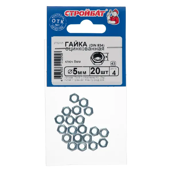 Гайка оцинкованная DIN 934 М5 — это крепежный элемент широкого назначения. Используется в комплекте с винтом диаметром 5 мм в строительных и ремонтных работах, а также при изготовлении мебели. Преимущества: - прочная сталь; - оцинкованное покрытие надежно защищает от коррозии; - длительный срок службы.