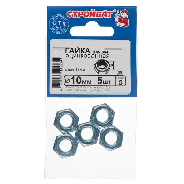 Гайка DIN 934 М10, 5 шт.