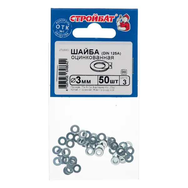 **Шайба DIN 125A М3** — стальной крепежный элемент, соответствующий европейскому стандарту DIN 125, имеющий класс точности А. Диаметр шайбы — 3 мм. В упаковке 50 штук. ### Основные характеристики - Класс точности А обеспечивает высокое качество устройства крепежных узлов и малую деформированность изделий. - Шайба имеет круглую форму с отверстием с закругленными краями, используется в комплекте с основными крепежными элементами — саморезами, гайками, болтами и винтами. Использование шайбы в качестве прокладки позволяет уменьшить давление на поверхность и предотвращает самопроизвольное раскручивание основного крепежного элемента. - Шайбы изготавливаются из стали, покрытой слоем цинка, что эффективно защищает от коррозионных воздействий и намного повышает долговечность металлических изделий и крепежных узлов.