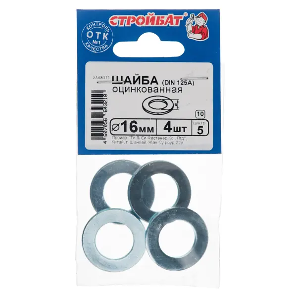Шайба DIN 125A 16 мм оцинкованная сталь цвет серебристый 4 шт.
