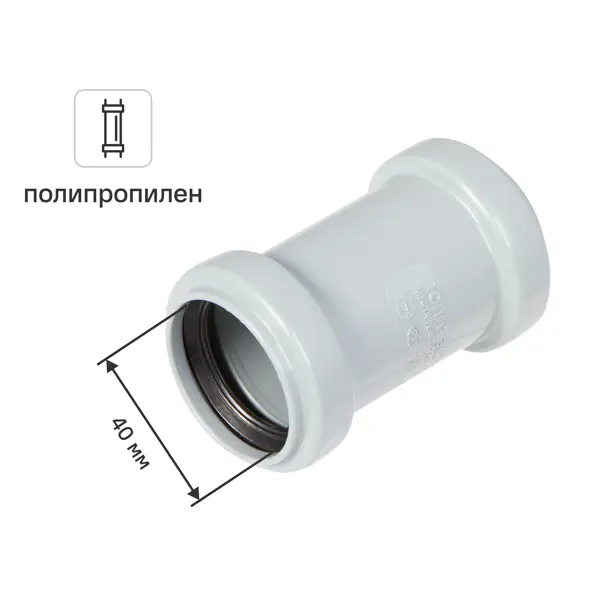Ремонтная муфта из полипропилена предназначается для раструбного соединения двух гладких концов внутреннего канализационного трубопровода. От обычной муфты её отличает отсутствие бортика внутри, поэтому стоит купить муфту Политэк для облегчения ремонтых работ. Преимущества: - позволяет в процессе ремонта перемещаться насквозь муфты раструбу любой трубы; - выдерживает температуру воды до +90°С.