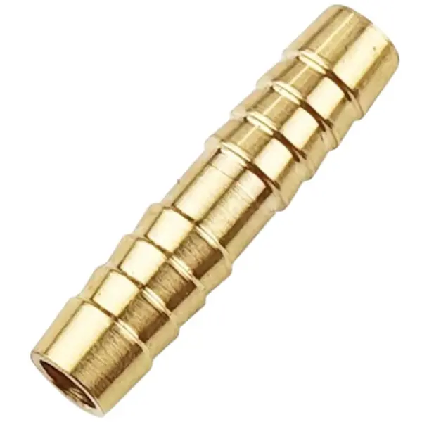 Штуцер BOUTTE (соединение «штуцер-штуцер») поможет быстро и надежно удлинить или отремонтировать поврежденные участки резиновых и гибких ПВХ шлангов диаметром 8 мм. Изделие выполнено из высококачественной латуни и отличается долговечностью, прочностью, устойчивостью к коррозии. Герметичное соединение шланга со штуцером обеспечивается рельефной поверхностью типа «елочка». Преимущества: - простота и удобство эксплуатации: штуцер устанавливается вручную, без применения инструмента; - не подвергается коррозии; - может использоваться в системах питьевого водоснабжения (латунь не токсична); - низкая цена.