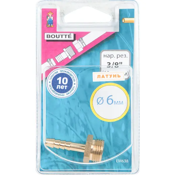 Наконечник используется для соединения различных шлангов с водопроводными элементами, имеющими внутреннюю резьбу. Выполнен из высококачественного латунного сплава, устойчивого к образованию коррозии. Материал достаточно прочный и долговечный, поэтому резьба со временем не стирается и не теряет первоначальной формы. Шланг диаметром 1/4 дюйма фиксируется на стандартной «ёлочке», исключающей обрывы и протекания. На изделии предусмотрено расстояние для дополнительного крепления с применением хомутов. Преимущества: - надёжная конструкция; - высококачественные материалы; - прочное крепление; - шестигранная головка для быстрого монтажа. **БЕРЕЖНО К ЛЮДЯМ, БЕРЕЖНО К ПРИРОДЕ** - Этот товар имеет бесплатную расширенную гарантию от 3 лет. Благодаря увеличенному периоду бесплатного сервисного обслуживания вы продлеваете срок службы товара, экономите на покупке нового в случае поломки и снижаете влияние на окружающую среду.