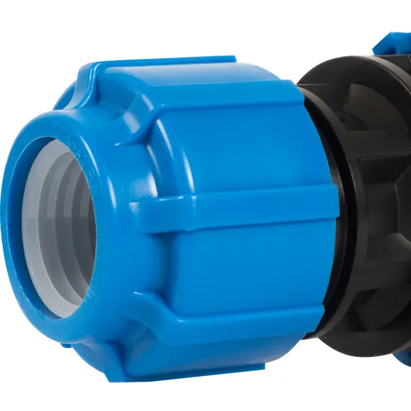 Переходная муфта 32х25 мм — популярный обжимной фитинг. С ее помощью осуществляется соединение между собой полиэтиленовых труб разного диаметра в непрерывную сообщающуюся систему. Произведена в России компанией «Политэк ПТК» под маркой «ТПК-АКВА» на современном немецком оборудовании. Вся продукция имеет сертификаты соответствия и гигиены. Для монтажа полиэтиленовой трубы синюю гайку нужно открутить и расположить на трубе за белым зажимным кольцом. С усилием вставить трубу в муфту, двигая зажимное кольцо до упора. Затянуть синюю гайку. Таким же образом вставить другую трубу во второе отверстие муфты соответствующего диаметра. Преимущества: - простой быстрый монтаж; - герметичное соединение; - надежность.