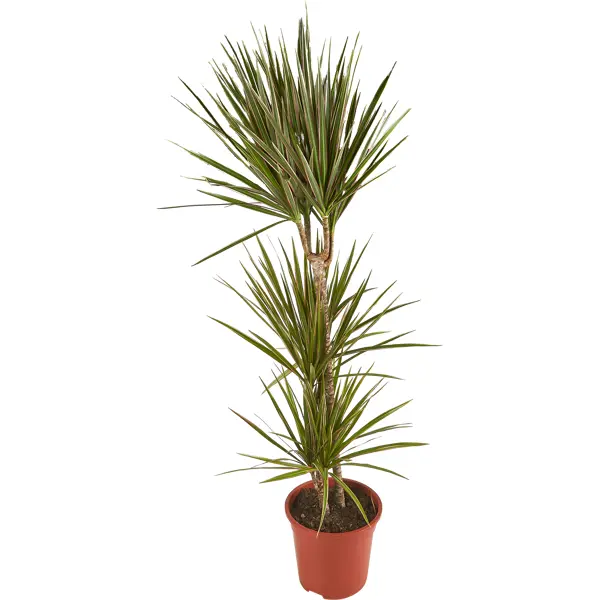 Драцена Marginata bicolor — пальма, длинные ланцетовидные листья которой имеют розовую кайму и белые полосы на основном зеленом фоне. Высота растения зависит от объема горшка и обычно не превышает 1 м. По мере роста нижние листья увядают и опадают. Если необходимо закрыть оголяющийся при этом ствол, то можно обрезать верхушку, которая подходит для размножения черенкованием. Из среза начнут расти молодые побеги. Все необходимое для укоренения черенков можно купить в нашем магазине. Драцена Маргината любит почву, постоянно увлажненную в засушливое время года, а зимой нуждается в отдыхе, в связи с чем полив сокращают. Растет как в тени, так и на солнце, но при низкой влажности воздуха нуждается в опрыскивании листьев. Преимущества: - пышная крона; - нетребовательна к освещению; - пересадка раз в два-три года.
