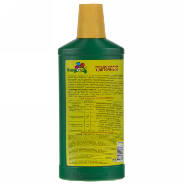 «ФлорГумат» — это комплексное цветочное удобрение, содержащее полный комплекс необходимых микроэлементов. Помогает восстановить естественное плодородие почвы и увеличивает эффективность усвоения элементов питания. Предназначено для подкормки всех видов комнатных и садово-парковых растений. Способствует длительному и пышному цветению, стимулирует рост корневой системы и повышает устойчивость к неблагоприятным факторам окружающей среды. Преимущества: - универсальное удобрение;