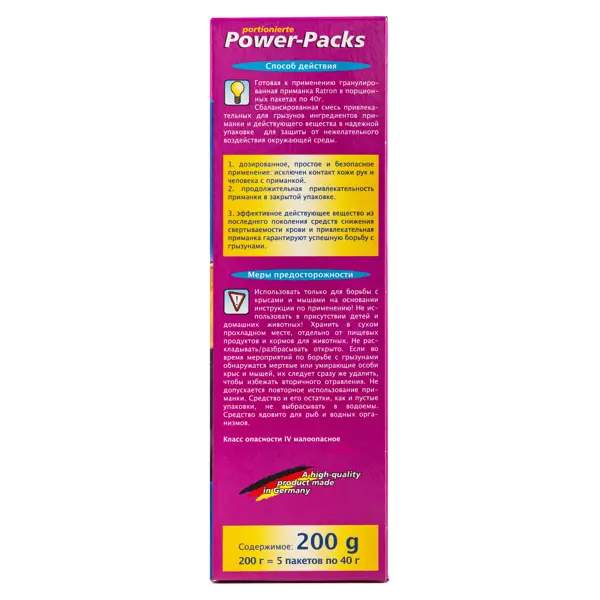 Средство от крыс и мышей Ratron, порционное, пакетик 200 г