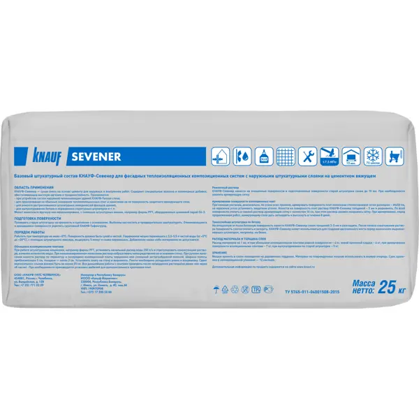 Клей «Кнауф» (Knauf Sevener) способен обеспечить идеальное приклеивание утеплителя к поверхности. В качестве рабочих материалов могут использоваться минеральная вата, пенопласт или другие виды, способствующие теплосбережению. Средство создает армирующий слой, обеспечивающий прочность и идеальную поверхность для прикрепления (склеивания) необходимых строительных материалов. Преимущества: - оптимальный расход материала – до 1,7 кг на 1 м2 слоя; - разнообразие видов поверхностей, на которые может наноситься клей с гарантией обеспечения склеивания с утеплителем.