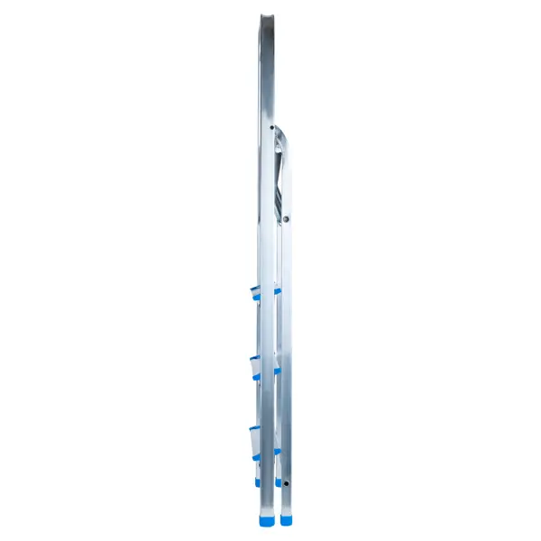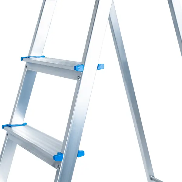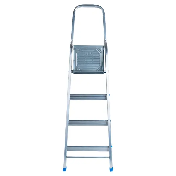 Стремянка из алюминия на 4 ступени – простая складная лестница, которая может использоваться для бытовых нужд или же при проведении специфических ремонтных работ (например, для побелки потолка). Раздвижная конструкция позволяет установить стремянку там, где нужно, без какой-либо дополнительной опоры. Преимущества: - особое рифление на ступеньках для защиты от скольжения; - очень лёгкая (весит всего 3,61 кг) – такую стремянку можно очень легко переносить с места на место; - в сложенном виде практически не занимает места в помещении; - изготовлена из алюминия, устойчивого к воздействию коррозии, УФ-излучения и другим факторам; - высота 3 м оптимальна для стандартной квартиры или частного дома.