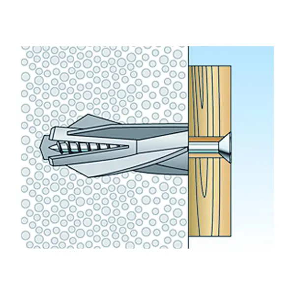 Дюбель для газобетона GB 8 подходит для крепления ламп, легких полок, держателей для полотенец, легких зеркальных шкафов, почтовых ящиков, корзин, конструкций крыш, подвесных потолков, карнизов для штор, деревянных и металлических фасадных конструкций, желобов для кабелей. Спиральные наружные ребра нейлонового дюбеля диаметром 8 мм и длиной 50 мм врезаются и надежно устанавливаются в строительном материале. Реализуется в упаковке по 4 шт. Преимущества: - легкость и простота монтажа; - экономия времени; - гарантированное надежное сцепление с газобетоном.