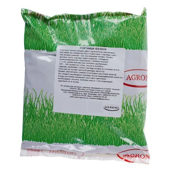 **Горчица белая** — однолетнее масличное растение семейства крестоцветных. Сидерат, используется для получения зеленого удобрения и улучшения почвы. Норма посева — 200-300 г на сотку. Заглубление производится на 2-3 см. Посев сидерата выполняется разбрасыванием с последующим выравниванием граблями. ### Особенности - Можно сеять на протяжении всего лета, но не позднее третьей декады августа. - После высадки и на стадии молодых ростков требуется обильный полив. - Скашивание производится на стадии массового цветения. Далее растения заделываются в почву.
