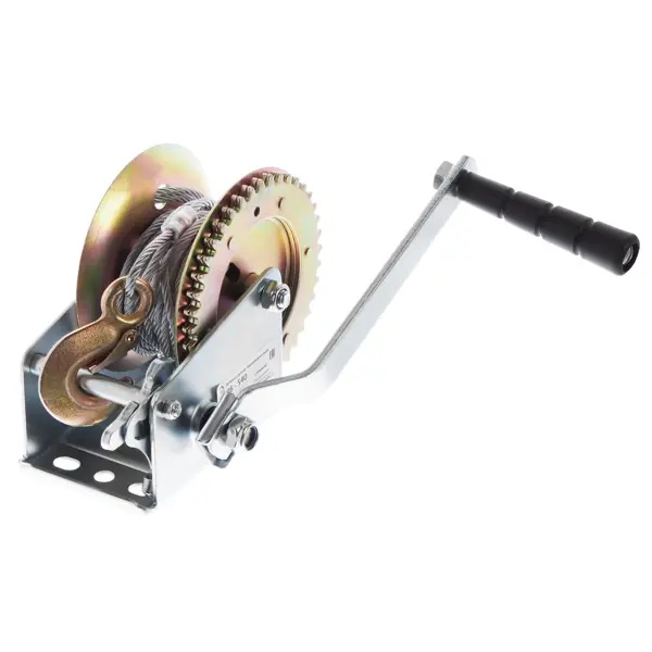 Ручная лебёдка Калибр ЛБ-540 используется для перемещения различны грузов по горизонтальной поверхности. Выдерживает нагрузку до 540 кг. В комплекте с лебёдкой поставляется сверхпрочный трос длиной 8 м и диаметром 4,8 мм, который даёт возможность без проблем перемещать грузы на большую дистанцию. Преимущества: - крюки из надёжной кованой стали оснащены специальными предохранительными карабинами, которые исключают риск соскальзывания груза; - 3х позиционная трещотка для удобного выполнения разных работ: скручивания троса под нагрузкой и без нагрузки, а также для закрепления и перемещения груза; - компактная и лёгкая (всего 2,5 кг).