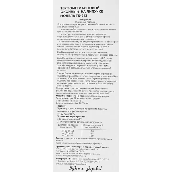 Термометр оконный Липучка помогает всегда одеваться по погоде. Градусник предназначен для измерения температуры окружающей среды в диапазоне от – 50 до + 50 C. Купить модель «Липучка» следует всем сторонникам практичных вещей. Благодаря максимально простому креплению установка займет считанные секунды. Прибор не содержит ртути, и является абсолютно безопасным. Градусник фиксируется на любой поверхности (дерево, стекло, пластик, металл) при помощи удобных кронштейнов на акриловых лентах. Прибор изготовлен из инновационного пластика и прочного стекла. Преимущества: - красивый дизайн; - крупные, яркие деления; - простота установки.