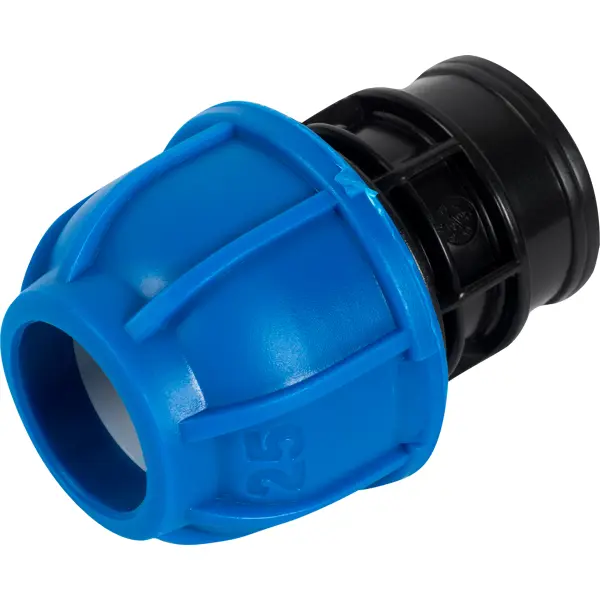 Переходная муфта — компрессионный фитинг для соединения полиэтиленовых труб диаметром 25 мм с элементами, имеющими резьбу диаметром 3/4 дюйма. Сделана из высококачественного полиэтилена, состоит из: корпуса, уплотнительного кольца, обеспечивающего герметичность, зажимного кольца, предотвращающего выдавливание трубы из корпуса, запрессовывающей втулки, удерживающей уплотнительное кольцо, и крышки-гайки, затягивающей всю конструкцию. При изготовлении фитинга были неукоснительно соблюдены все требования производственного цикла. Рекомендуется купить муфту для использования при монтаже полиэтиленового трубопровода, она позволяет создать быстрое и надежное соединение без применения специального оборудования. Преимущества: - надежность; - возможность многократного использования.